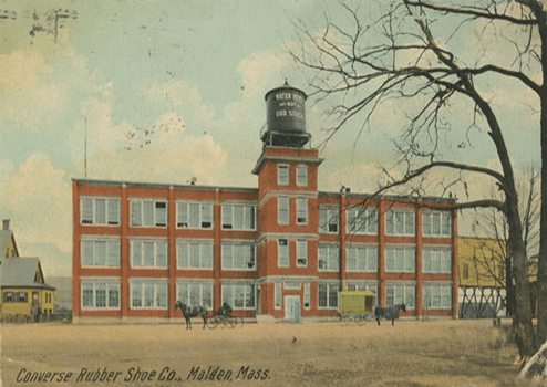 1908년 마르키스 컨버스 (MARQUIS M.CONVERSE)가 컨버스 방한용 고무창 신발회사(CONVERSE RUBBER SHOE COMPANY)를 메사츄세스주 엔도버에 설립하면서