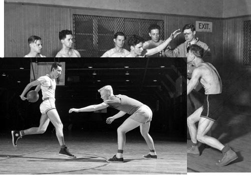 최초의 올림픽 농구 경기. Chuck Taylor는 1932년에 농구 올아메리칸을